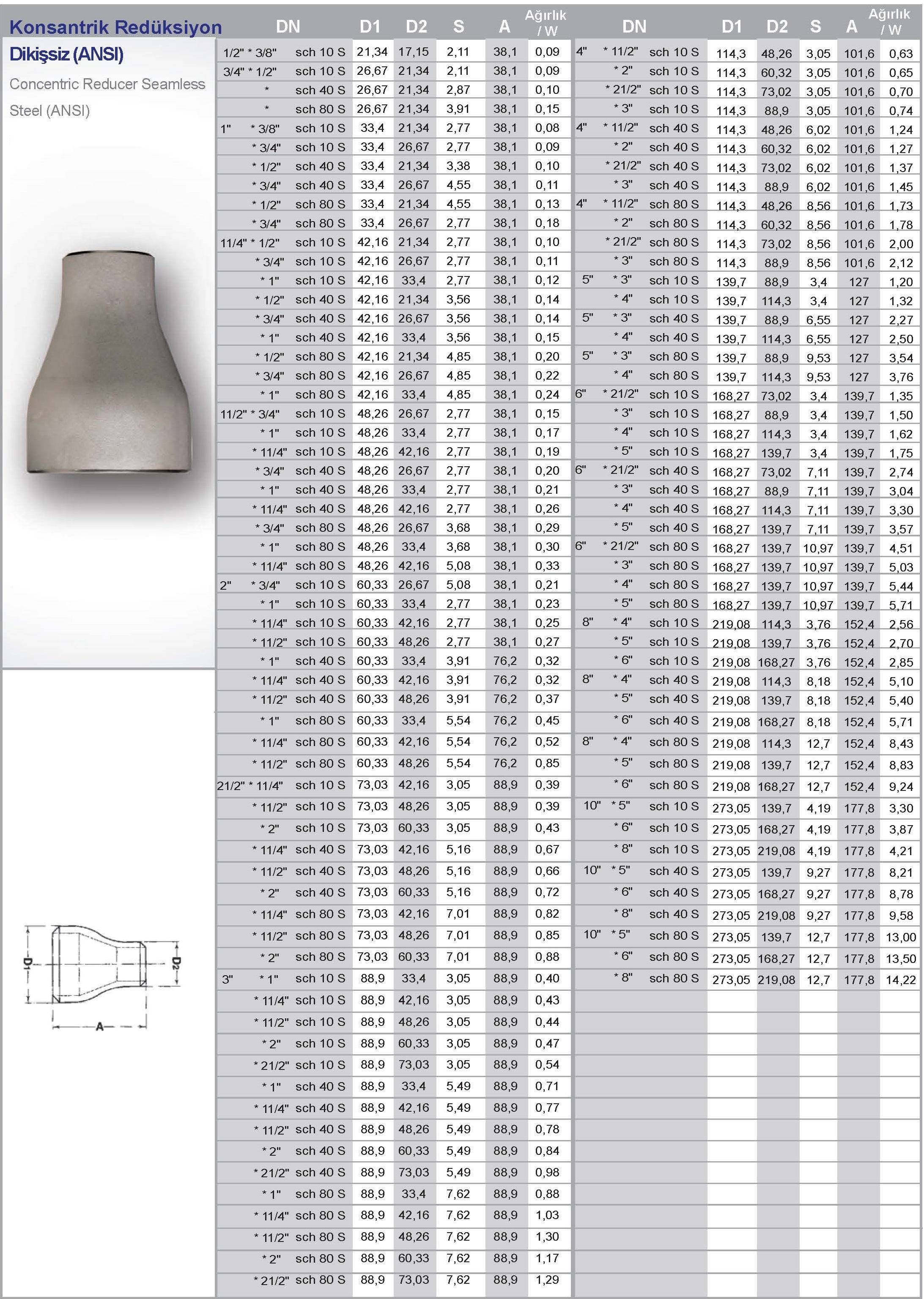 Konsantrik Redüksiyon Dikişsiz (ANSI)